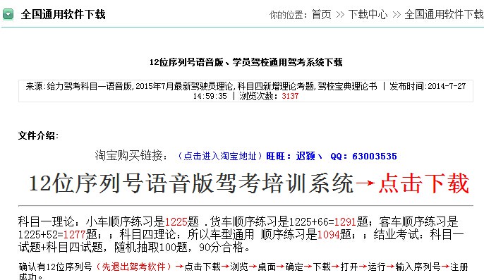 根据光盘上边的学员版序列号或驾校版序列号,确定您下载哪个文件,点击下载点击进入,点击地址1.2.3都可以进行下载